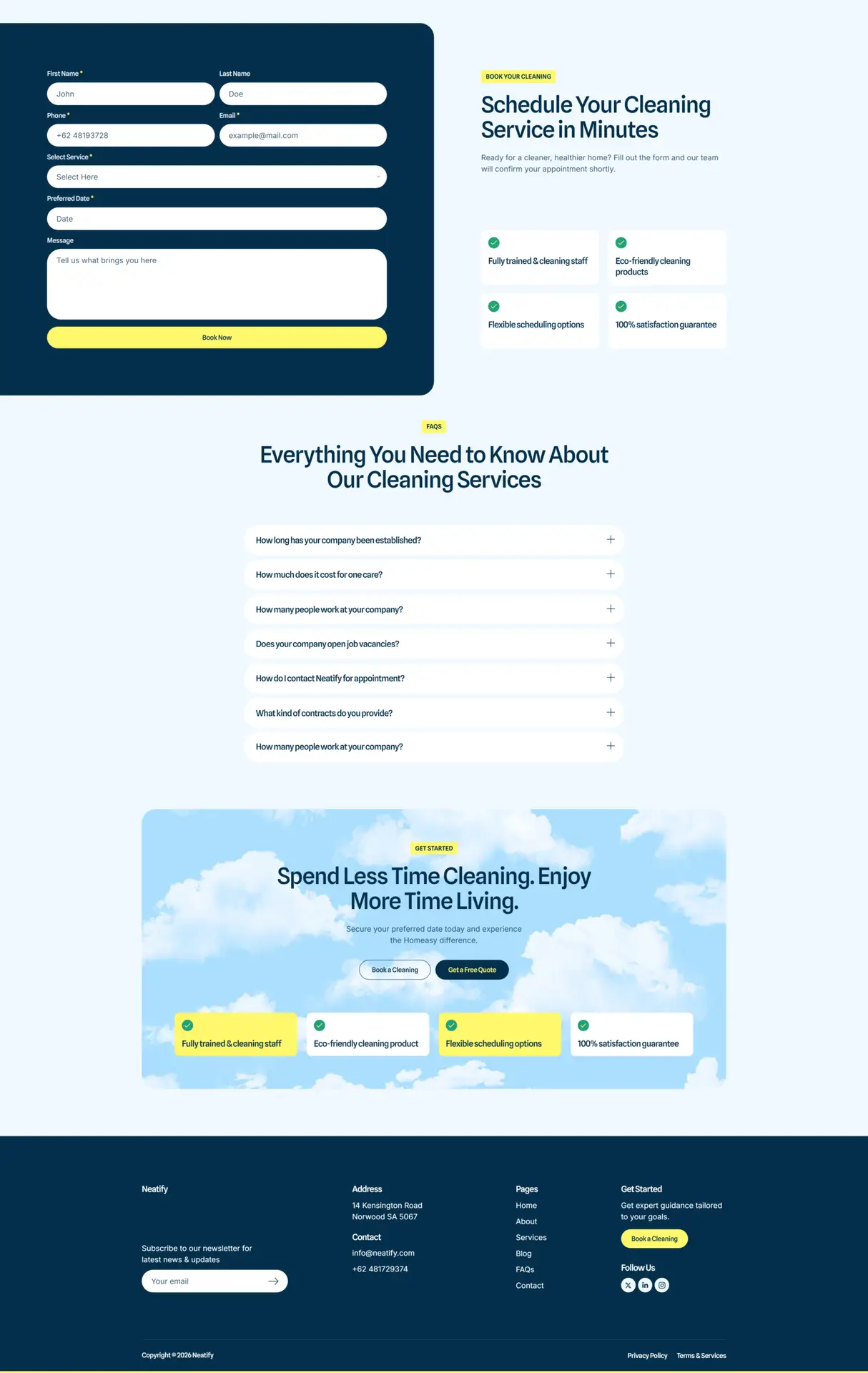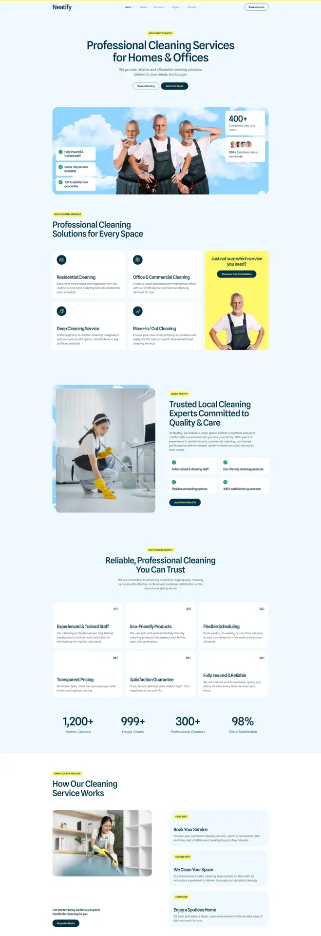 The cleaning service was operating in a saturated market where most competitors looked virtually identical online same stock photos, same generic layouts, same forgettable designs. Despite offering a reliable and personal service, their website did nothing to differentiate them or give potential customers a reason to choose them over anyone else.